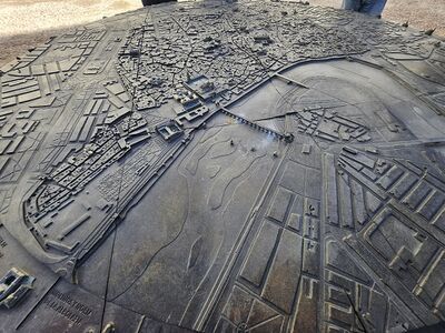 En el Patio de San Eulogio se dispone una gran maqueta de bronce, de unos tres metros de diámetro, que representa el casco histórico de Córdoba y permite situar la Mezquita‑Catedral en su contexto urbano.