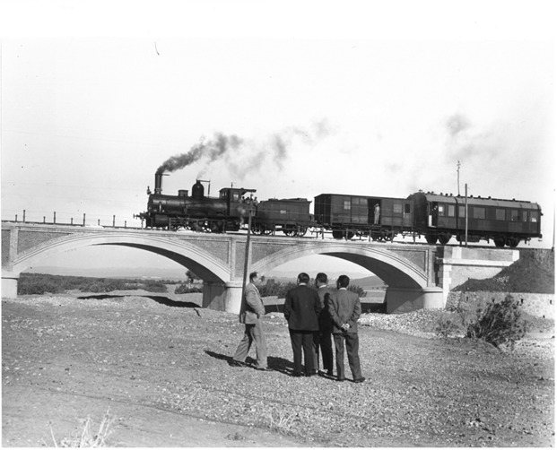 | 09:24 3 mar 2026 | 1947 marchenilla Fuencubierta.jpg (archivo) | 74 kB | Liante (discusión | contribs.) | {{InfoImagen |Descripción="Tren cuya composición la forman la locomotora Hartmann 030-2517 ó 030-2518, habitualmente empleadas en la tracción de los trenes por esta línea y únicas de fabricación rusa que circularon por España, con un furgón y un solo coche, en el Puente sobre el río Guadalmazán (La Fuencubierta, Córdoba), línea de Marchena-Valchillón. Este puente acababa de ser inaugurado sustituyendo el original que era metálico, por lo que intuyo que se trata de una prueba de carga y resisten… | 1 | |