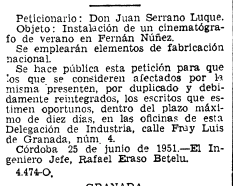 BOE 3 de julio de 1951. Cine en Fernán-Núñez