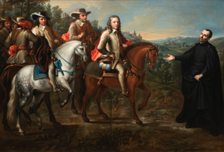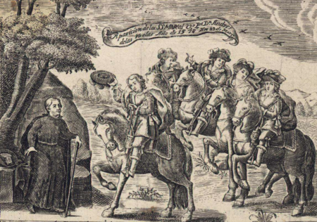 [[Archivo:El padre Roelas con los cinco caballeros.png|miniaturadeimagen|450x450px|''El [[Padre Roelas]] con los Cinco Caballeros''. Cuadro de [[Juan Bautista de la Peña]] en la [[capilla de los Santos Mártires]] de la [[Basílica de San Pedro|Basílica menor de San Pedro]] (1753)]] | |||