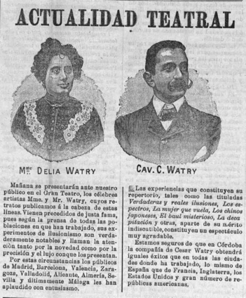 El primer artista que dio a conocer la magia moderna fue el italiano '''Conde Patrizzio Castiglioni''', quien trabajó en el [[Gran Teatro]]. Su propaganda era colosal, con cartelones litografiados que lo mostraban rodeado de esqueletos y demonios. Introdujo la "cámara negra" y el enigma de la calavera que contestaba preguntas.[[Archivo:Actualidad Teatral. 26 de febrero de 1904.png|miniaturadeimagen|424x424px|Diario de Córdoba - 26 de febrero de 1904 ]]