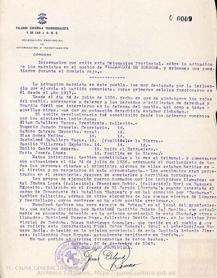 Según el informe de la Causa General, los miembros del comité revolucionario de Villanueva de Córdoba estaba compuesta por: