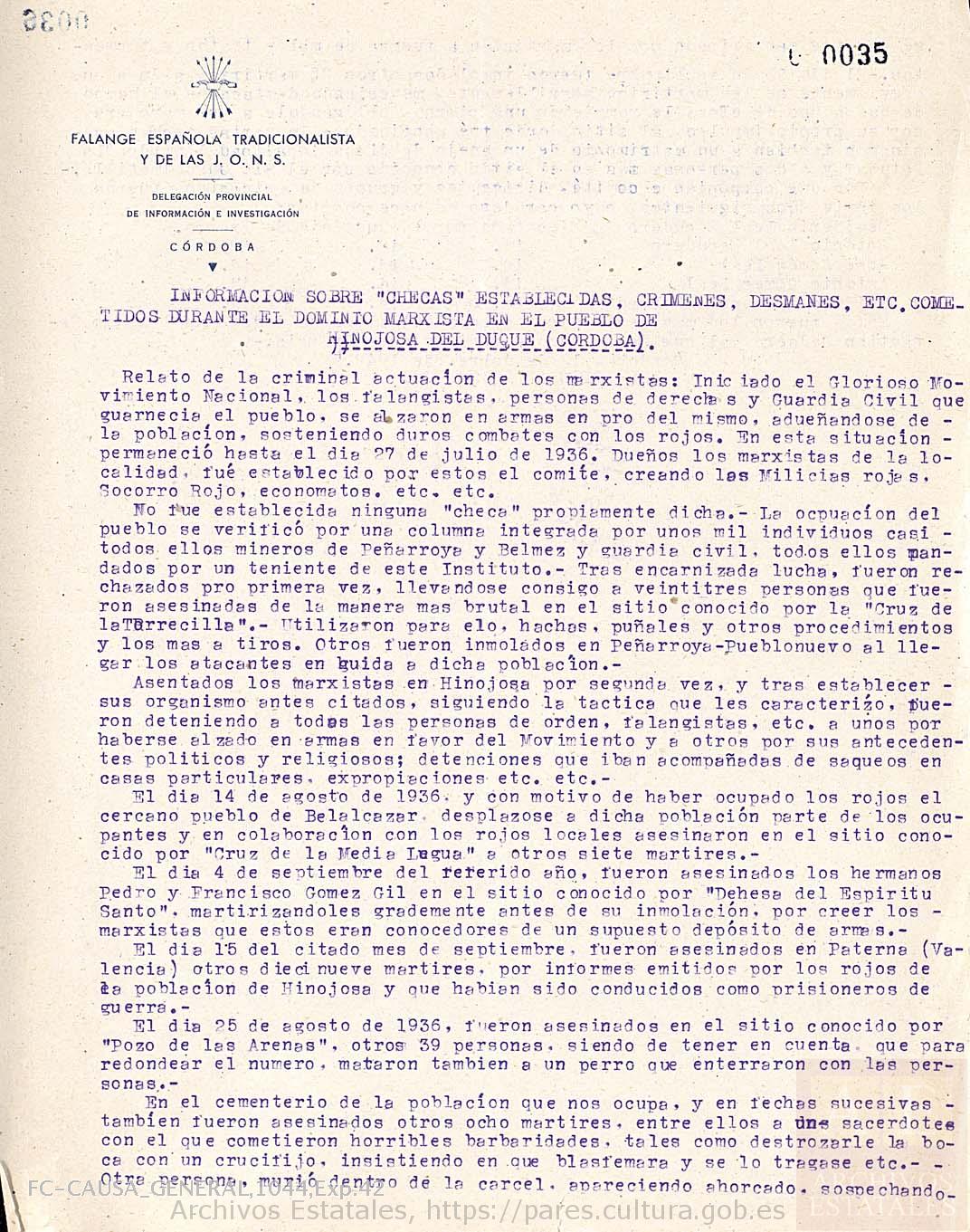 Causa General. Checas en Hinojosa del Duque (informe de 1942)