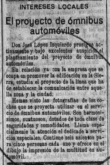 - ↑ Autobús de Córdoba S.A. Anuncio de suscripción de acciones. Diario de Córdoba. 22 de noviembre de 1922. Disponible en Internet